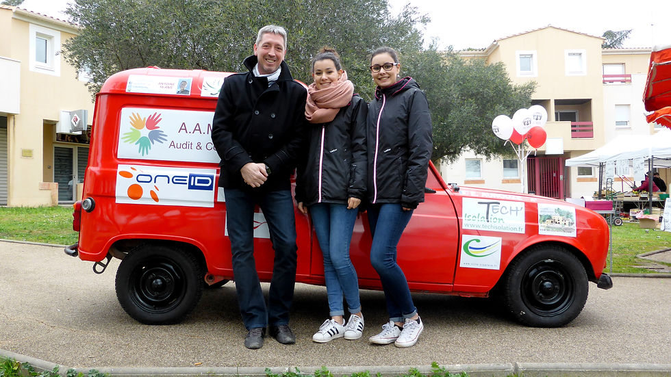Ce matin, nous étions au marché de Clapiers, où nous avions convié tous nos sponsors, pour présenter notre 4L.